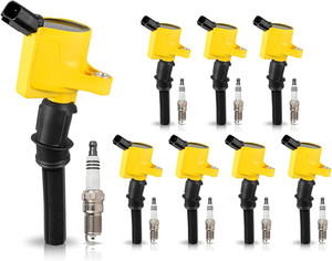 8 Yellow Ignition Coil Pack and Spark Plug Compatible with Mercury Ford Mustang