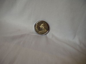 ELEGANCE vintage Japanese makeup COMPACT silver toned PEACOCK design w/ mirror