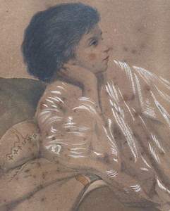 Vintage Drawing Original People, Portrait, Man Girl Academic Art Nouveau Artwork