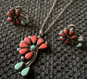 Vintage Native Pendant And Earrings Set - Signed Angelita Cooche
