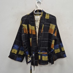 Toast Ikat Forte Check Wrap Tie Cotton Kantha Oriental Woven Kimono Jacket Small