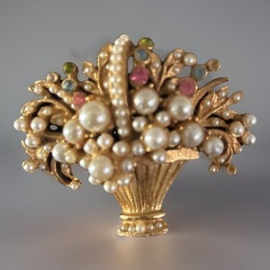 Vintage 80s French Baroque Flower Basket Brooch Pin Rare Runway Statement READ