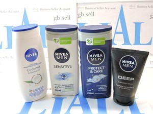 Job Lot 4 Nivea Men Shower Gel Wash Sensitive Protect & Care Coconut Jojoba Oil
