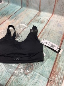 ADIDAS ' ALL ME LUXE SPORTS BRA ' BLACK ' MEDIUM SUPPORT ' SIZE 2XS(c-d)