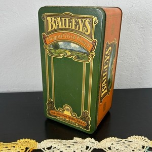 Vtg Decorative Tin-Bailey Original Irish Cream- Rectangular Orange Green has lid