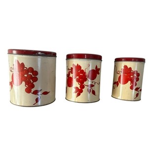 Vtg Retro MCM Nesting Metal Canisters Fruit Grapes Flower biege yellow Set Of 3