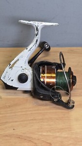 Vintage Spinning Reel White Black Copper Spool Unbranded Fishing Gear Untested