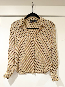 Vintage Y2K INC Button Up Shirt Womens 4 Petite 100% Silk Geometric Abstract