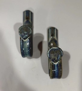 Stoneware 2PC Curtain Tieback Towel Holder Nautical Summer Beach Sea Shell Blue