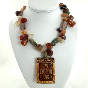 Artisan Multi-Stone Necklace With Reversible Pendant Horse & Chinese Characters
