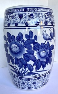 Beautiful Vintage Style Blue and White Porcelain Garden Stool Bird Motif