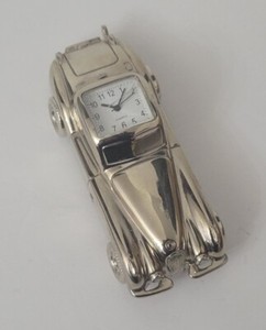 Vintage Silver Sportcar Car Mini Clock Hotwheel Like As/Is 3.5 x 1.25"