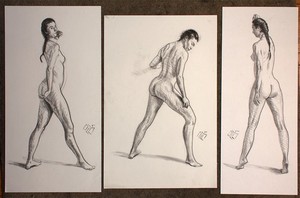3x Original Female Charcoal on paper life Drawing nude Girl woman artwork