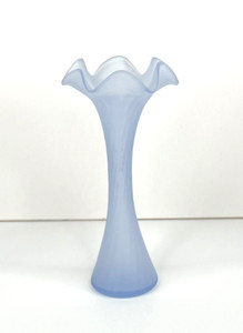 Frosted Blue Glass Vase Ruffled Edge Satin Textured Swirl Art Glass 8"
