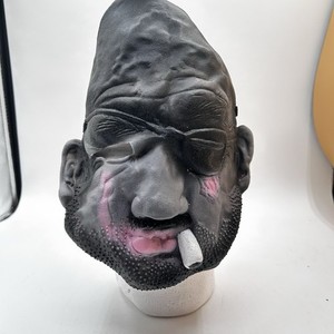 SCARY GRAY FACE w/ EYE PATCH & CIGARETTE LATEX FULL FACE HALLOWEEN MASK - ADULT