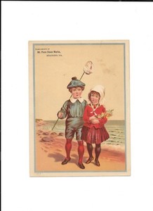 Vintage Trade Card MT PENN STOVE WORKS Reading PA kids on beach XLarge