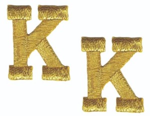 Gold Block Letter K Patch Embroidered Cut Out Iron on Sew on (1" in) Lot of 2