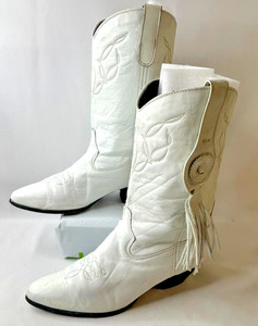 Vintage LAREDO Leather Tassel White Western Cowgirl Rodeo Boots Womens Size 8.5M