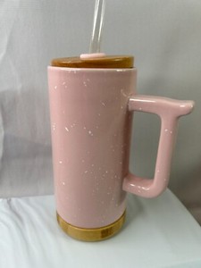 Ello Glass Mug W/Handle Wood Bottom Top & Straw, Pink - 16 Fl Oz