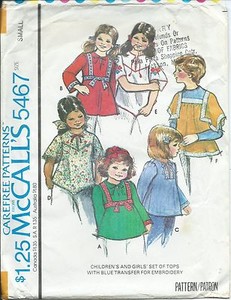 M 5467 sewing pattern girls SET of TOPS + embroidery Transfer sew size 6-8 UNCUT