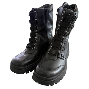 NWOT Dr Scholls Sarge Black Combat Boots 1.5" Platform w/Zipper Closure Rave-6.5