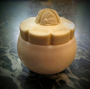 Vintage Yardley London Cosmetic Face Cream Jar Ivory Glass & Bakelite Bee Lid