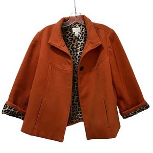 Chico’s Medium Burnt Orange Leopard Print Smooth Plush Swing Jacket R8