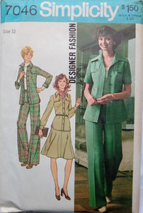 SIMPLICITY 7046 Vintage 70s Designer Fashion Shirt Jacket Pant Skirt Sz 12 UNCUT