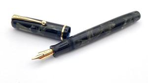 VINTAGE CONWAY STEWART NO 240 FOUNTAIN PEN GRAY AND BLACK 14K OBLIQUE BROAD NIB