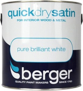 Berger Satin Finish Interior Door Wood Metal Paint Pure Brilliant White 1.25L