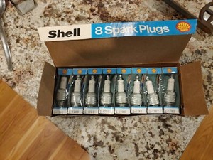 VINTAGE SHELL SPARK PLUGS S-17RT FULL SET OF 8 ,SEALED. NEW OLD STOCK, NICE!!!