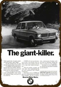 1970 BMW 2002 Sports Car GIANT KILLER Vintage-Look DECORATIVE REPLICA METAL SIGN