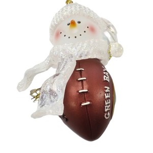 Greenbay Packers Acrylic Snowman Football Christmas Tree Ornament 2.75 Inches