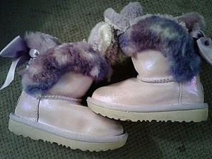 UGG LITTLE GIRLS PURPLE PAZ CLASSIC II WITH BUNNY EARS BOW SIZE 7 TD