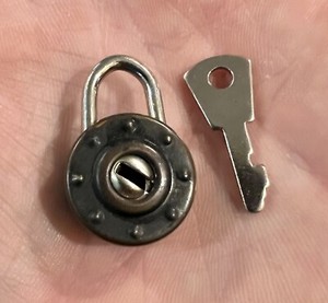 Super CUTE Small Round Brass Padlock & Key For Trinket Boxes Etc…