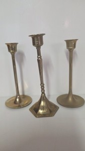 X3 Vintage Brass Thin Candlesticks Holder Candle Holder