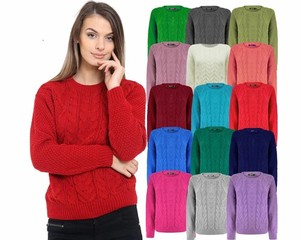 Ladies Women Cable Knit Long Sleeve Crew Neck Knitted Jumper Baggy Sweater Top