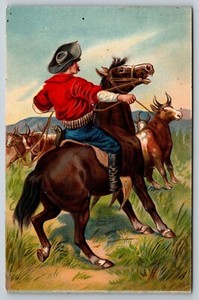 Postcard Cowboy on Horse Roping Steer c1908 embossed 21D