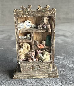 Vintage Doll House Furnature Cabinet Armoire Hard Plastic Teddy Bears Drawer