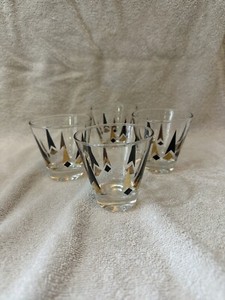 Anchor Hocking Golden Peaks Atomic Arrow Whiskey Glass MCM Black Gold 2.75" Set