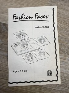 Vtg Fashion FACE Plates Toy INSTRUCTION SHEET ONLY Tomy Hasbro 1989