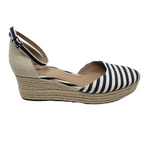 J. Jill Wedge Cecile Espadrilles Stripe Ankle Strap PLatform Sandal Womens Sz 11