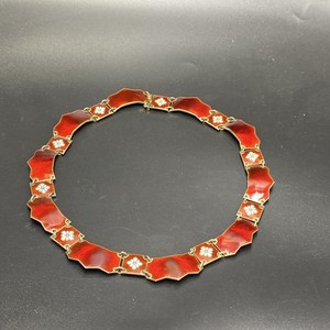 Volmer Bahner Denmark Red Enamel Curved Panel Collar Necklace