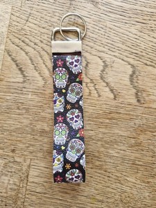 Handmade Faux Leather Skulls Day Of The Dead Keychain Wristlet