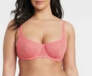 Women’s Auden Lace Unlined Balconette Bra Coral 38C NWT