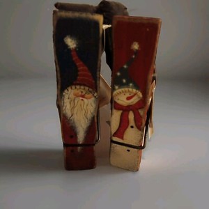 Santa And Snowman Lg 6 Inch Tall Painted Clothes pins ByGift Craft