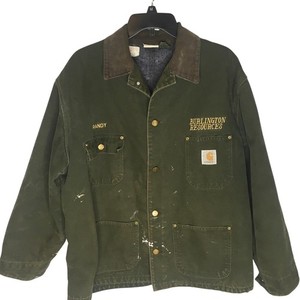 Carhartt Jacket Mens 46 Green Chore Coat Blanket Lined Duck Canvas Workwear