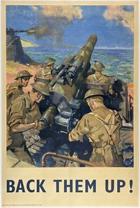 Original Vintage Poster BACK THEM UP! British War WWII Coastal Artillery LINEN