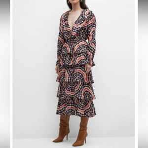 Marie Oliver Blythe Tie-Dye Ruffle Tiered Long Sleeve Midi Dress Sz S NEW