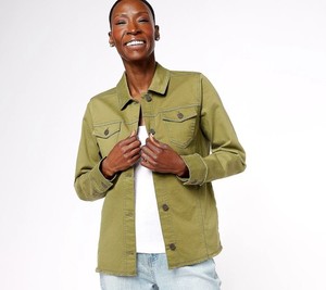 Susan Graver Fall Fashion Denim Jacket with Fray Trim Fall Olive 2X New